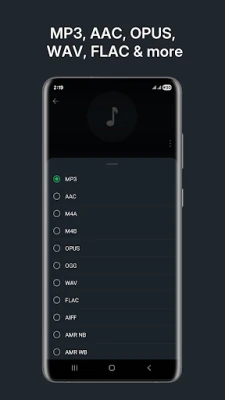 Fungua ubunifu wako kwa kutumia Audio Converter kuunda sauti za mlio wa simu, kengele, au arifa maalum. Kata klipu sahihi na uzihifadhi kama nyimbo binafsi au uzitumie moja kwa moja kama sauti chaguomsingi za kifaa chako. Uwezo wa kutoa sauti kutoka kwenye video huongeza matumizi yake zaidi, kukuruhusu kuhifadhi nyimbo au mazungumzo muhimu kutoka kwenye video zako. Huduma hii imeundwa kwa urahisi wa matumizi ya kila siku; hauhitaji akaunti yoyote wala mipangilio ngumu. Inafanya kazi kikamilifu bila mtandao na ina kiolesura wazi na kirafiki, kuhakikisha unadhibiti faili zako za sauti kwa ujasiri na urahisi. Unaweza pia kushiriki faili ulizobadilisha kupitia programu za ujumbe au kuzipakia kwenye huduma za wingu kama Google Drive, huku ukiweka faili zako zikiwa zimepangwa vizuri kwenye kifaa chako.
