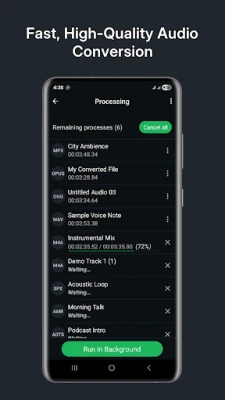 Je, unahitaji zana mahiri na rahisi ya kudhibiti sauti kwenye kifaa chako cha Android? Audio Converter ndiyo suluhisho kamili, ikikupa uwezo wa kubadilisha miundo ya sauti, kukata sehemu unazotaka, na hata kutoa sauti kutoka kwa video, yote haya moja kwa moja kutoka mikononi mwako. Iwe unataka kubadili muziki wako kuwa MP3, kuandaa sauti ya mlio wa simu, au kuweka kengele maalum, Audio Converter inarahisisha mchakato mzima kwa kugusa mara chache tu. Ni mfumo mmoja jumuishi kwa mahitaji yako yote ya sauti, ulioundwa kurahisisha kazi ngumu.