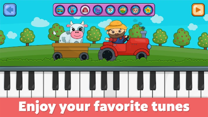 Ndani ya Baby piano for kids & toddlers, watoto watagundua mkusanyiko mzuri wa nyimbo nane maarufu za chekechea, zikiwemo "Jingle Bells" na "Twinkle Twinkle Little Star," zinazowapa fursa ya kuimba na kujifunza. Zaidi ya hayo, programu inatoa fursa ya kuchunguza vyombo mbalimbali vya muziki kama piano, ngoma, filimbi, na gitaa, vikiongozwa na uhuishaji wa kufurahisha unaowavutia watoto wenye umri wa miaka 2 hadi 5. Kipengele cha sauti mbalimbali kinaongeza thamani ya kielimu, kikijumuisha sauti zaidi ya 60 za wanyama, magari, roboti, na viumbe wa ajabu katika seti sita za kipekee, zote zimeundwa kuelimisha na kuburudisha.