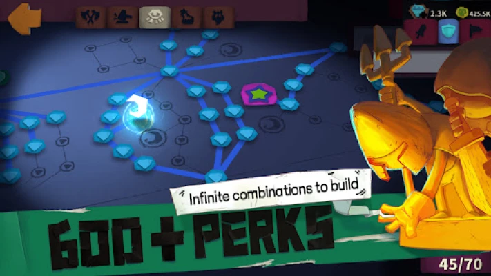 Solo Knight inakupa uhuru wa kubuni shujaa wako bila mipaka. Gundua zaidi ya vipande 200 vya vifaa, kila kimoja kikiwa na ujuzi wake wa kipekee, ukibadilisha mtindo wako wa mapigano wakati wowote ili kukabiliana na changamoto mbalimbali. Ongeza nguvu zako kwa kutumia zaidi ya runes 90, zinazokuruhusu kubadilisha na kuimarisha athari za ujuzi wako—kutoka kuongeza idadi na kasi ya makombora hadi kuita totems za kukusaidia vitani. Na kwa zaidi ya perks 600, njia yako ya ukuaji ni mikononi mwako, ikikupa uwezo wa kipekee wa kimkakati na uwezekano usio na kikomo wa maendeleo.